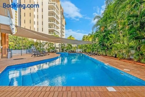 ダーウィンの中心部にある'Harbour Highlight' Poolside Living on Esplanadeは、バルコニーを提供しています。このアパートメントでは、パティオと無料WiFiが備わるユニットを提供しています。 ベッドルーム1室、リビングルーム、設備の整ったキッチン(冷蔵庫、ポット付)、バスルーム(シャワー、無料バスアメニティ付)1室が備わるエアコン付きのアパートメントです。バスルームにはバスタブ、ヘアドライヤーが備わります。また、タオルとベッドリネンを用意しています。. ..