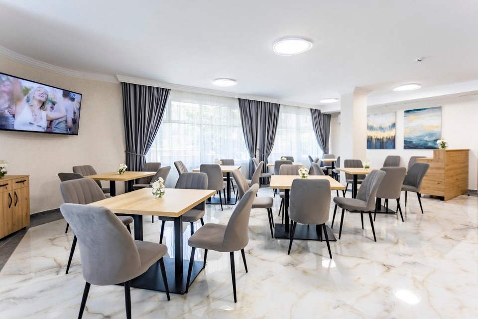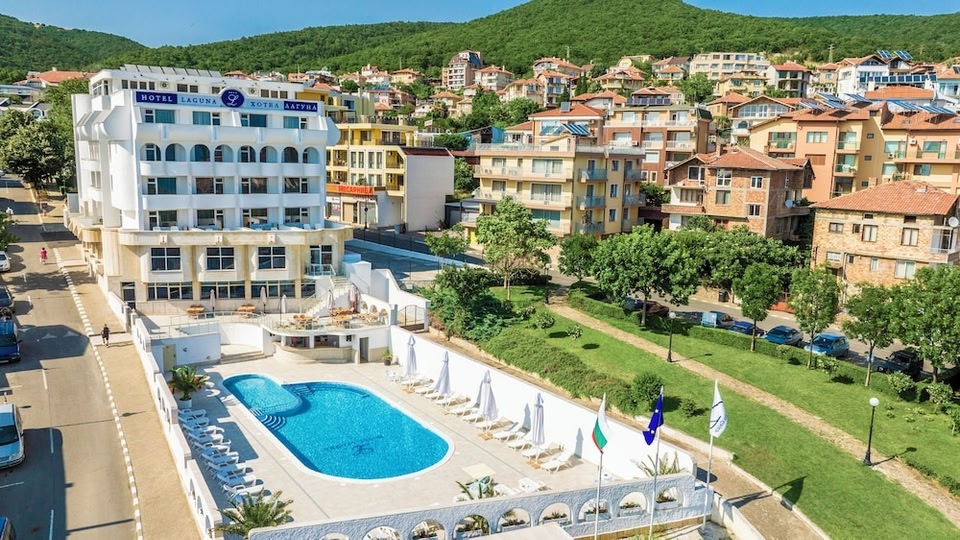スヴェティ・ヴラス・セントラルビーチから徒歩8分のHotel Laguna SPAはスヴェティ・ヴラスにある宿泊施設で、屋外プール、無料専用駐車場、フィットネスセンター、庭を提供しています。レストラン、バー、屋内プール、サウナも提供しています。館内全域での無料WiFi、24時間対応のフロントデスク、空港トランスファー、ルームサービスを提供しています。 Hotel Laguna...