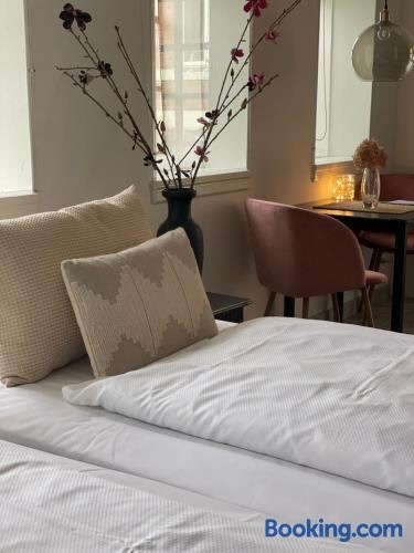 Svendborg Train Stationからわずか12kmのCarlsminde ferielejlighedはStenstrupにある宿泊施設で、庭、テラス、共用キッチンを提供しています。この別荘には無料専用駐車場があり、周辺エリアではハイキングやフィッシングなどのアクティビティを楽しめます。 グラウンドフロアにある別荘で、ベッドルーム2室、薄型テレビ、設備の整ったキッチン(冷蔵庫、食器洗い機付)が備わります。この別荘にはタオルとベッドリネンを用意しています。 Carlsminde...