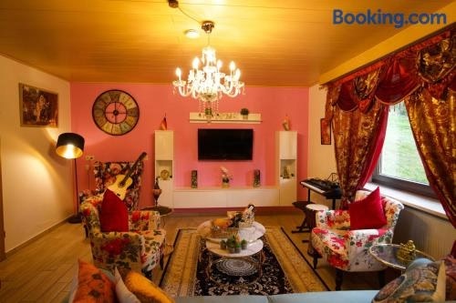 パッサウ駅からわずか38kmのStilvolles und Kunstvolles Retreat Apartment mit 400qm Garten & Massage und AyurvedaはGrainetにある宿泊施設で、庭、共用ラウンジ、共用キッチンを提供しています。この宿泊施設では、パティオ、卓球台、無料専用駐車場、無料WiFiを提供しています。...