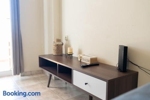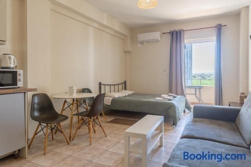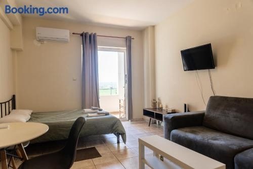 ラリサにあるElia mini suites 7はラリッサ考古学博物館から3.9km、アルカザーから5.2kmで、エアコン付きのユニット(バルコニー、無料WiFi付)を提供しています。 庭の景色を望むテラス、ベッドルーム1室、リビングルーム、薄型テレビ、設備の整ったキッチン、バスルーム(シャワー付)1室が備わるアパートメントです。 コザニ国立空港まで117kmです。