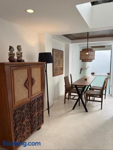 サヌールにあるCasa Umartiは屋外プールを提供する宿泊施設で、ウダヤナ大学まで7.6km、バリ博物館まで8.5km、スラガン・タートル・アイランドまで10kmです。セガラビーチから徒歩12分の場所にあるエアコン付きの宿泊施設で、無料WiFiと敷地内の専用駐車場を提供しています。. ..