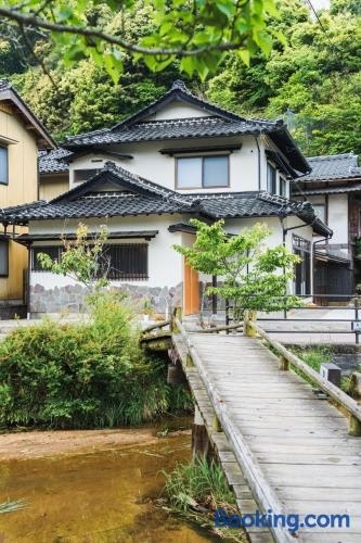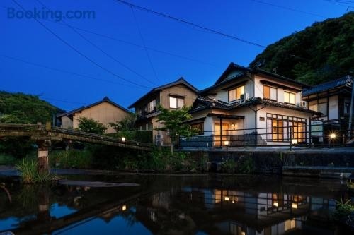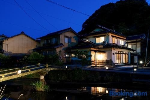 松江市にある川の灯は、湖の景色を望むユニット(無料WiFi利用可)とテラスを提供しています。宍道湖から6.2kmの宿泊施設で、庭と無料専用駐車場を提供しています。 ベッドルーム3室、リビングルーム、設備の整ったキッチン(冷蔵庫、ポット付)、バスルーム(ビデ、シャワー付)1室が備わるエアコン付きの別荘です。バスルームにはバスタブ、無料バスアメニティ、ヘアドライヤー、スリッパが備わります。 川の灯から小泉八雲記念館まで11km、Atagoyama Parkまで24kmです。出雲空港まで19kmです。