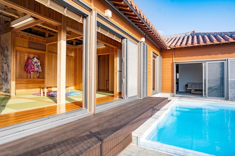 このバケーションホームは恩納村にあります。ショッピングをするなら、アメリカンビレッジやイオン モール沖縄ライカムがおすすめ。地域の自然を楽しむなら、青の洞窟や万座毛へ行きましょう。琉球村と東南植物楽園も訪れる価値のあるスポットです。 恩納村に位置する、この快適なバケーションホームの近くでは、さまざまなアクティビティが楽しめます。ムーン ビーチが徒歩 15 分、沖縄海岸国定公園が徒歩 5 分の場所にあり、屋外駐車場 (敷地内)に車を置いたまま、徒歩でアクセス可能です。観光から戻った後は、屋外プールでくつろいだり、バルコニーまたはパティオで喉を潤したりして過ごせます。庭もおすすめです。室内にはWiFi (無料)とテレビが備わっており、インドアも充実しています。調理ができる簡易キッチンがあり、オーブン、コンロ、冷蔵庫、電気ケトル、電子レンジ、調理器具が備わっています。浴室には、ヘアドライヤー、洗浄機付トイレ、バスアメニティ (無料)が備わっています。また、ランドリー設備も備わっているので、着替えの量を減らすことができます。他の設備やサービスには、ベッドシーツ、アイロン台、温度調節可能な冷房、温度調節可能な暖房があります。