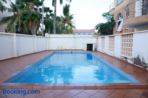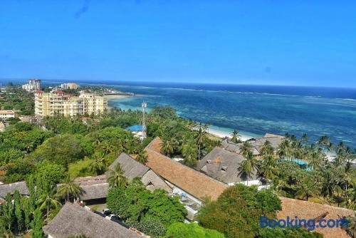 Beachfront mini studio nyali with swimming poolはモンバサにある宿泊施設で、モンバサビーチまで徒歩9分、Haller Parkまで300m、ニヤリ・ゴルフ・コースまで3.3kmです。専用プール、無料WiFi、無料専用駐車場を提供しています。 薄型テレビが備わるアパートメントです。 beachfront mini studio nyali with swimming poolからマンバ・ヴィレッジ・クロコダイルファームまで3.