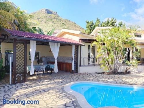 タマランにあるTamarin chambre d'Hôtesは庭とテラスを提供する宿泊施設で、タマリナ・ゴルフコースまで7.6km、パラディ・ゴルフクラブまで19km、レス・シューツ・デ・リヴィエール・ノワールまで23kmです。タマリン・ビーチから徒歩19分の場所にあるエアコン付きの宿泊施設で、無料WiFiと敷地内の専用駐車場を提供しています。 バスルームにはシャワー、ヘアドライヤーが備わります。また、タオルとベッドリネンを用意しています。 Tamarin chambre...