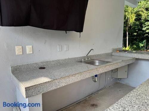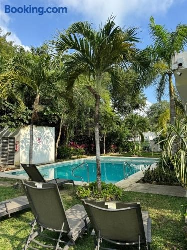 プエルト・モレロスにあるCasa Puerto Paraísoは、庭の景色を望むユニット(無料WiFi利用可)とテラスを提供しています。この別荘では、専用プール、庭、無料専用駐車場を提供しています。 ベッドルームが1室ある別荘で、薄型テレビ、エアコン、リビングルームが備わります。ユニットにはキッチンが備わります。 Casa Puerto ParaísoからADO国際バスステーションまで36km、プラヤ・デル・カルメン・マリタイム・ターミナルまで37kmです。カンクン国際空港まで26kmです。