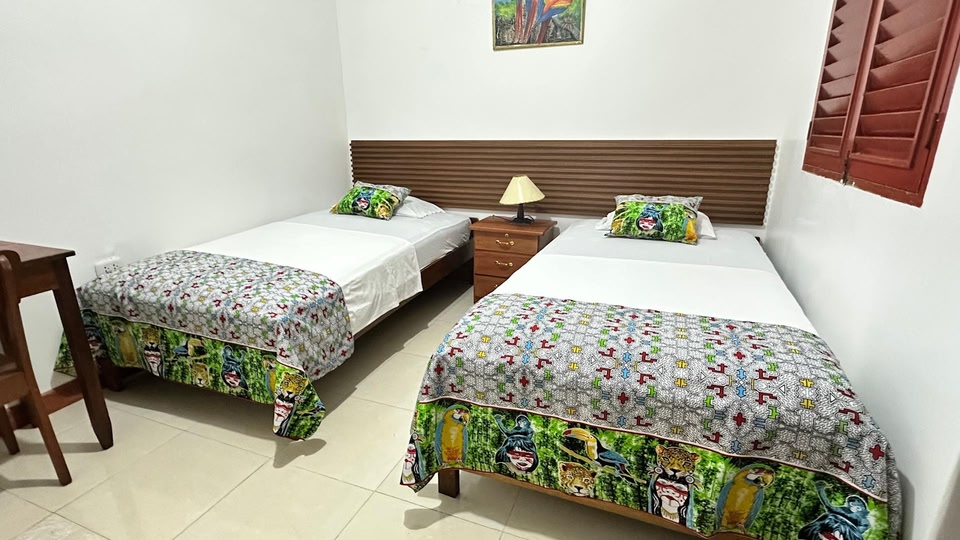 Hostal Maravilla Amazónicaはイキトスにある宿泊施設です。ファミリールームとテラスも提供しています。このゲストハウスは館内全域での無料WiFi、屋内プール、共用ラウンジを提供しています。 Hostal Maravilla Amazónicaのお部屋にはデスク、薄型テレビ、専用バスルーム、ベッドリネン、タオルが備わります。 この宿泊施設に滞在中は、コンチネンタルまたはアメリカンブレックファーストの朝食を楽しめます。...