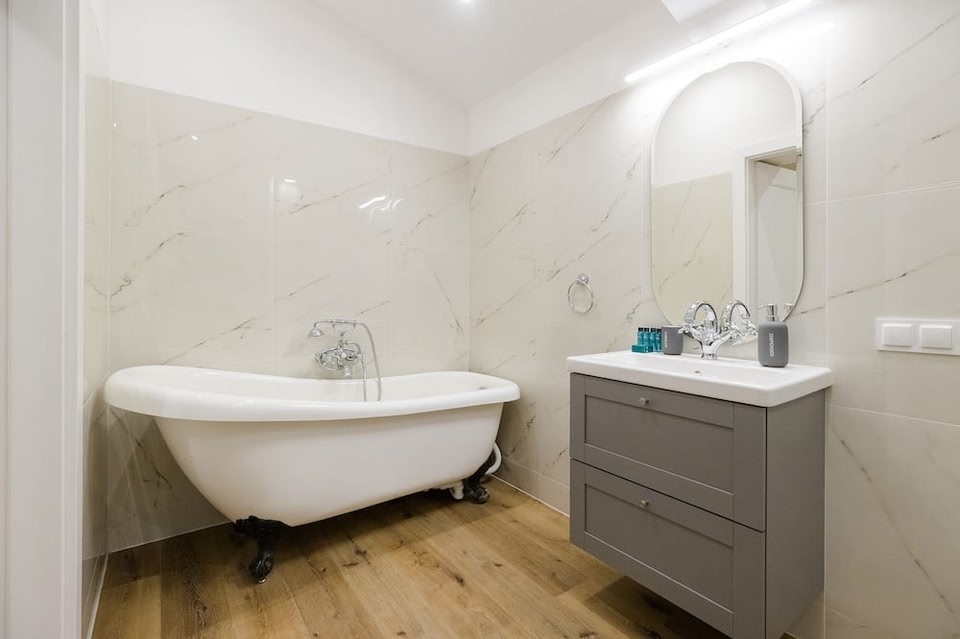 このアパートメントは、ワルシャワのツェントルム地区にあります。フレデリック ショパン博物館やコペルニクス科学センターは地域の人気スポット。ショッピング好きの方には、ハラ ミロフスカやハラ コシキは外せません。ルーム エスケープ ワルシャワとワルシャワ動物園も訪れる価値のあるスポットです。 ワルシャワに位置する、この快適なアパートメントは、さまざまなスポットにアクセスしやすい場所にあります。便利な敷地内駐車場が利用でき、車を置いたまま文化科学宮殿 (徒歩 15 分) やズウォテ タラスィ (徒歩 11 分) の観光に繰り出すことが可能です。徒歩 5 分圏内にある、プラツ スタリンキェヴィチャ 04 トラム停留所やプラツ スタリンキェヴィチャ 05 トラム停留所から電車に乗って、近くのスポットまで足を伸ばしてワルシャワをより深く楽しむことができます。この宿泊施設 (3 ベッドルーム、1 バスルーム) では、低刺激性寝具とデスクを利用できます。WiFi (無料)にアクセスしたり、薄型テレビの前でリラックスしたりして過ごせます。浴室には、ヘアドライヤー、バスアメニティ (無料)、タオルが備わっています。調理ができるキッチンがあり、オーブン、コンロ、大型冷蔵庫 / 冷凍庫、電気ケトル、調理器具、トースターが備わっています。また、洗濯機 / 乾燥機も備わっているので、着替えの量を減らすことができます。他の設備やサービスには、アイロン台、暖房、毎日の客室清掃、ワードローブ / クローゼットがあります。