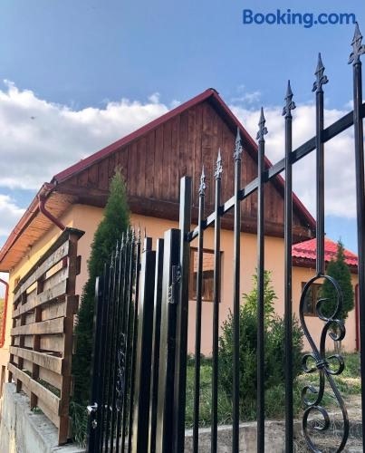Căsuța cu livadăはBicaにある宿泊施設で、VIVO! Clujまで44km、クルージュ・アレナまで48km、バンフィ城まで49kmです。この別荘では、庭、バーベキュー施設、無料WiFi、無料専用駐車場を提供しています。 庭の景色を望むテラスのある別荘で、ベッドルーム2室、設備の整ったキッチンがあります。薄型テレビが備わります。 Căsuța cu...