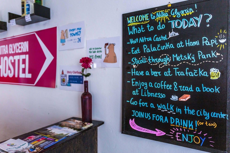 ニトラ グリセリン ホステルはニトラにあります。スロバキア農業野外ミュージアムとMěstské Museumは地域の人気カルチャースポット。コルゴンや黒死病の柱も見どころです。 駐車場 (無料)付きのニトラのホステルスナックバー / デリ、コーヒーショップ / カフェ、およびドライクリーニングがあるホステルです。共用エリアでの WiFi (無料)および セルフパーキング (無料)もご利用いただけます。その他に、敷地内にはランドリー設備、ゲームコーナー、および図書室があります。ニトラ グリセリン ホステルには冷房が備わる 8 室の客室があります。ケーブルテレビが備わっています。バスルームにはシャワーがあります。 ニトラにあるこのホステルでは、無料 WiFi をご利用いただけます。ハウスキーピングは毎日行われます。