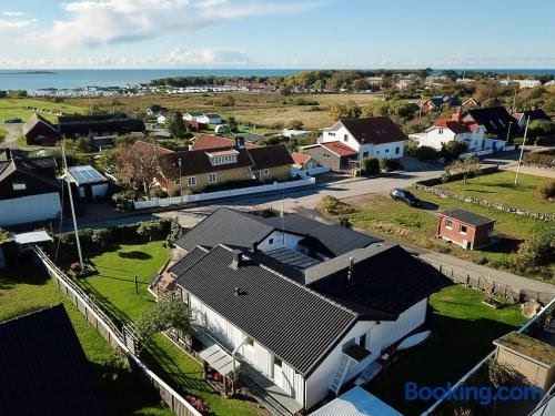 庭の景色を望むGustavsro i Apelviken Annex 1は庭、テラス、バーベキュー施設を提供する宿泊施設で、ヴァールべリ駅まで約2.6kmです。アペルビケンビーチから徒歩8分の場所にあるエアコン付きの宿泊施設で、無料WiFiと敷地内の専用駐車場を提供しています。 グラウンドフロアにあるアパートメントで、ベッドルーム1室、設備の整ったキッチン(冷蔵庫、食器洗い機付)、リビングルーム、薄型テレビが備わります。追加料金にてタオルやリネンを利用できます。. ..