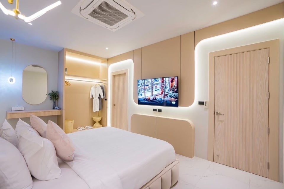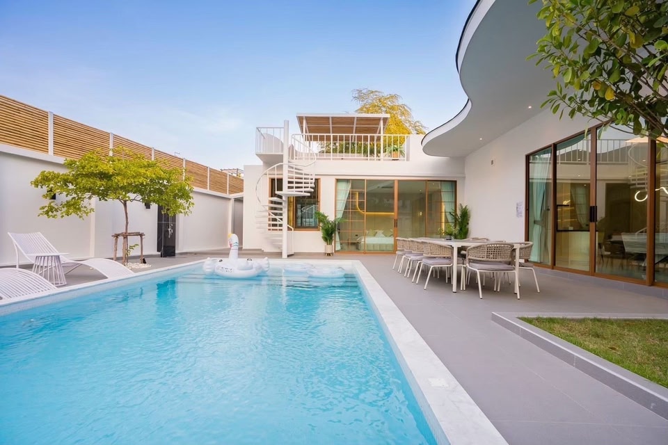 パタヤのジョムティエンにあるこのヴィラに泊まれば、ジョムティエン ビーチまで徒歩で 5 分、ドンタン ビーチまで徒歩で 7 分で行けます。 このヴィラは、ウォーキング ストリートまで 7.1 km、パタヤ ビーチまで 7.8 km の場所にあります。 敷地内にはセルフパーキング (無料) が備わっています。 それぞれ異なる装飾のヴィラにはプライベートプールやLED テレビが備わり、特別な滞在をお楽しみいただけます。専用の家具付きバルコニー / パティオがあります。キッチンには冷蔵庫と電子レンジが備わっています。WiFi (無料)をご利用いただけるほか、ケーブル番組の視聴も可能です。
