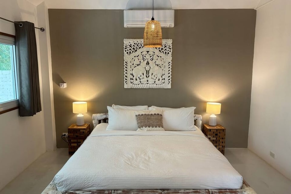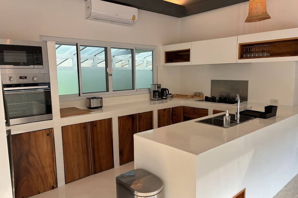 サムイ島にあるKHAMIN POOL Villaは、山の景色を望むユニット(専用プール、バルコニー付)を提供しています。フィッシャーマンビレッジから3.2kmで、ルームサービスを提供しています。 ベッドルーム2室、リビングルーム、設備の整ったキッチン(冷蔵庫、コーヒーメーカー付)、バスルーム(シャワー、無料バスアメニティ付)2室が備わるエアコン付きのヴィラです。このヴィラにはタオルとベッドリネンを用意しています。 KHAMIN POOL...