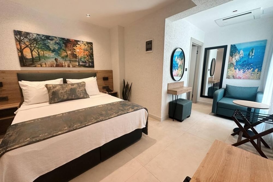 タガ オテルはボドルムにあります。アクティビティを楽しむなら、ボドルム マリーナやボドルム フェリー ターミナルがおすすめ。地域の自然に心癒されるなら、ビテツ ビーチやオルタケント ビーチはいかがでしょう。ギュンベット・ウォータースポーツとボドルム マリタイム ミュージアムも訪れる価値のあるスポットです。 ビテツ ビーチに歩いてすぐ行ける朝食 (無料)付きのホテルこのホテルには、レストラン、バー / ラウンジ、およびコーヒーショップ / カフェがあります。朝食ビュッフェ (無料)、共用エリアでの WiFi (無料)、およびマネジャー主催のレセプション (無料)もご利用いただけます。 その他に、敷地内には季節限定屋外プール、子供用プール、およびコンシェルジュ サービスがあります。タガ オテルには 21 室の客室があり、冷房、ミニバー (無料)、セーフティボックスをご利用いただけます。 ベッドには高級寝具があります。 43 インチ 液晶テレビでは、ケーブルチャンネルをご覧いただけます。バスルームにはシャワー付き浴槽、ヘアドライヤーがあります。 無料 WiFi (通信速度 : 50 Mbps 以上) を使用してネットサーフィンをお楽しみいただけます。ハウスキーピングは毎日行われます。このほかリクエストに応じてご利用いただける設備には低刺激性寝具もあります。 施設内には、子供用プール、季節限定屋外プールがあります。