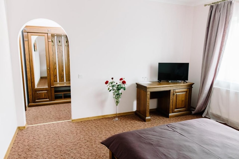 Hotel KoronaはKolybayevkaにあり、バーを提供しています。レストラン、ルームサービス、24時間対応のフロント、館内全域での無料WiFiなどを提供しています。敷地内に専用駐車場があります。 Hotel Koronaのお部屋にはエアコン、デスク、薄型テレビ、専用バスルーム、ベッドリネン、タオル、市街の景色を望むバルコニーが備わります。それぞれのお部屋にワードローブが備わります。