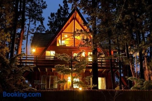 ビッグ・ベア・シティにあるThe Wilkie Cabin ~ Calming home hideaway in the woods with fireplace, balcony, grill, & board gamesは子供の遊び場と24時間対応のフロントを提供しており、ビッグ・ベアー・マリーナまで8.7km、アルパイン・スライド・アット・マジック・マウンテンまで9.4kmです。Bear Mountain Golf Courseから8.