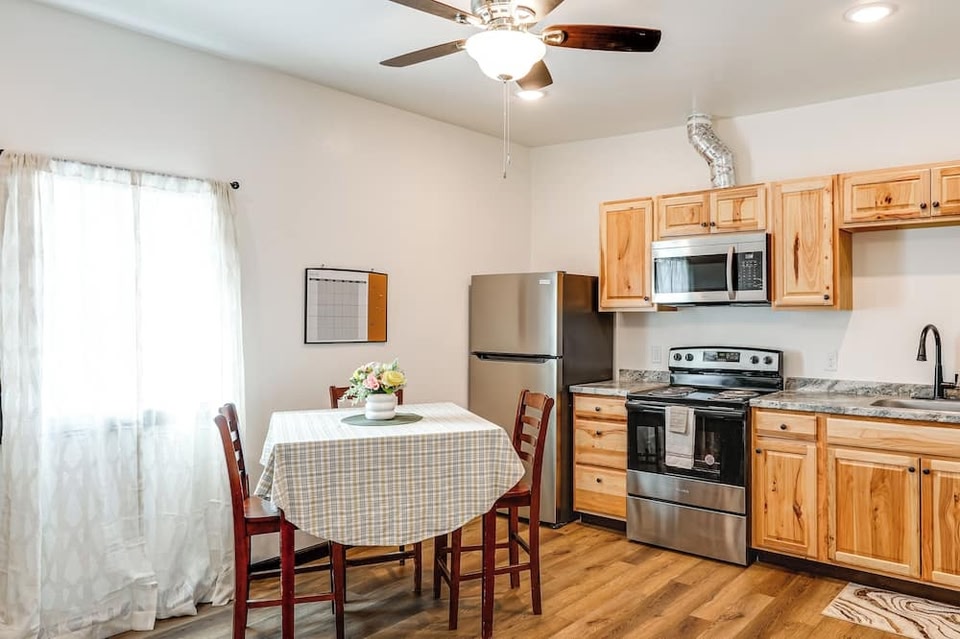 このアパートメントは、フェアバンクスのレメータ地区にあります。フェアバンクスアントラーアーチとアラスカ ハウス アート ギャラリーは、この地を代表する人気観光スポット。アクティビティを楽しみたいなら、フードゥー ブリューイング カンパニーやリーガル・ゴールドストリームがおすすめです。ウェッジウッド野生動物保護区とフェアバンクス アイス ミュージアムも訪れる価値のあるスポットです。 フェアバンクスに位置する、この快適なアパートメントは、さまざまなスポットにアクセスしやすい場所にあります。便利な近隣の駐車場が利用でき、車を置いたままファウンテンヘッド アンティーク オート ミュージアム (徒歩 11 分) やクリーマーズ フィールド (徒歩 15 分) の観光に繰り出すことが可能です。この宿泊施設 (1 ベッドルーム、1 バスルーム) では、リビングルームとシーリングファンを利用できます。キッチンには、オーブンやコンロのほか、電子レンジ、調理器具、ペーパータオルが備わっています。他の設備やサービスには、ベッドシーツ、アイロン台、暖房があります。