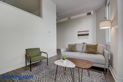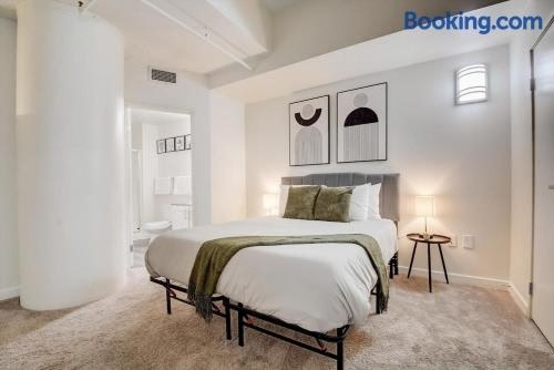 市街の景色を望むCozySuites - 2BR with Direct Skybridge Access #2はインディアナポリス中心部にあり、フィットネスセンターを提供しています。ルーカス・オイル・スタジアムから1km以内、インディアナポリス・モーター・スピードウェイから8.