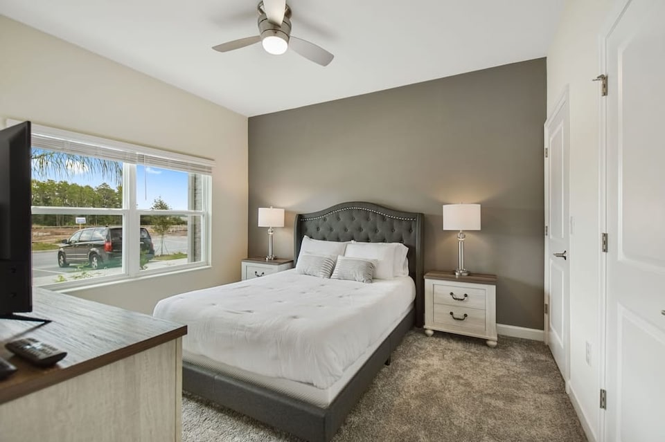 このバケーションホームは、キシミーのゴルフコースの隣に位置しています。ショッピングを楽しむなら、オールド タウンやディズニー スプリングス™へ足を運びましょう。また、地域の人気スポットを楽しむなら、ウォルト ディズニー ワールド リゾートとディズニーズ ハリウッド スタジオをおすすめします。エプコットとアクアティカはぜひ訪れたいスポットです。 この禁煙のバケーションホームでは、周辺でさまざまなアクティビティが可能で、ゴルフコースやバスケットボールなどを満喫できます。便利な近隣の駐車場が利用でき、車を置いたまま歩いてシングル クリーク リージョナル パーク (徒歩 7 分)を訪れることができるほか、車を利用すればメディーバル タイムズ (レストラン) (車で 7 分) にもすぐにアクセス可能です。共用プールでリラックスしたり、バケーションホームの屋外テニスコートで喉を潤したりして過ごせます。宿泊施設にはフィットネスセンターも備わっています。室内にはWiFi (無料)とケーブル / 衛星放送テレビが備わっており、インドアも充実しています。オーブン、冷蔵庫、コーヒーメーカー、トースターが備わっており、自由に調理できます。浴室には、タオルとシャンプーが備わっています。また、洗濯機と乾燥機が備わっているので、もっと身軽に旅行を楽しめます。他の設備やサービスには、アイロン台、暖房があります。