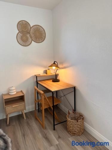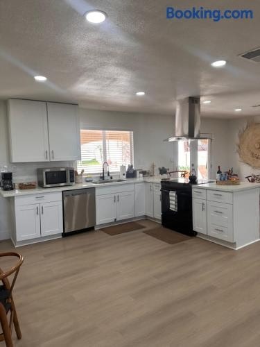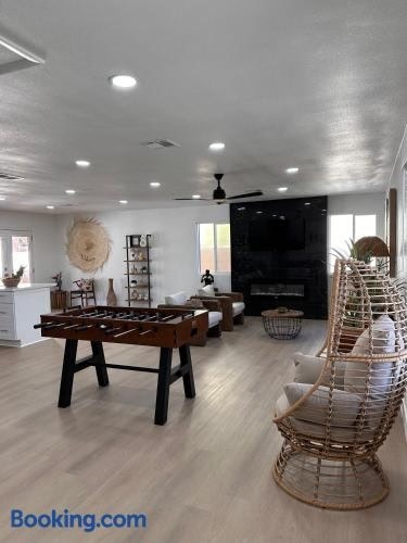 庭の景色を望むCasa Valentinoはラスベガスにある宿泊施設で、フリーモント・ストリート・エクスペリエンスから8.4km、ストラトスフィア・タワーから8.5kmです。モブ・ミュージアムから7.9kmの場所にあるエアコン付きの宿泊施設で、無料WiFiと敷地内の専用駐車場を提供しています。 ベッドルーム3室、薄型テレビ、キッチンが備わる別荘です。 Casa Valentinoからフォーラム・ショップ・アット・シーザーズ・パレスまで8.9km、コロシアム・アット・シーザーズ・パレスまで9.