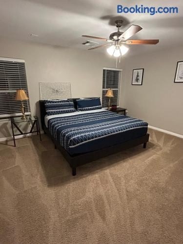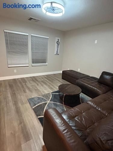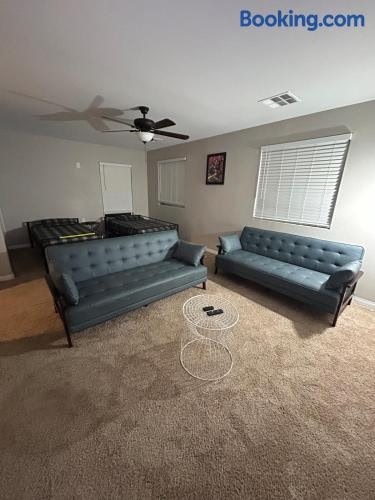 ラスベガスのNorth Las VegasにあるNorth Las Vegas Beauty 4 bedroomは、ネオン博物館から11km、フリーモント・ストリート・エクスペリエンスから12km、ストラトスフィア・タワーから15kmです。モブ・ミュージアムから11kmの場所にあるエアコン付きの宿泊施設で、無料WiFiと敷地内の専用駐車場を提供しています。 ベッドルーム1室、薄型テレビ、キッチンが備わる別荘です。 North Las Vegas Beauty 4...