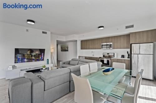 マイアミの中心部にあるAmazing location in the heart of Miamiはベイフロント・パーク駅から徒歩9分、ベイフロント・パークから1.1kmで、エアコン付きのユニット(バルコニー、無料WiFi付)を提供しています。このアパートメントには専用プールもあります。 Amazing location in the heart of Miamiにはテラス、ベッドルーム3室、バスルーム3室、設備の整ったキッチン、薄型テレビ、ホットタブが備わります。...