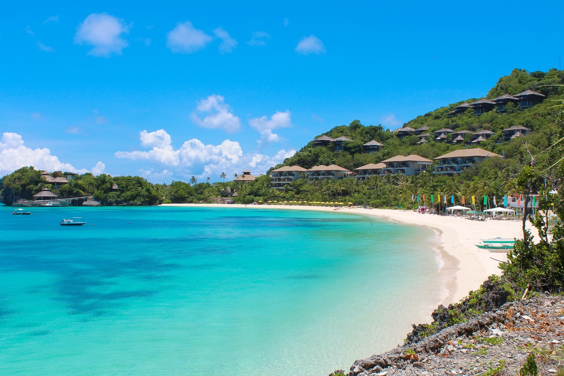 セブ島やパラワン諸島など、風光明媚な離島が点在するフィリピン。そのうちのひとつ「ボラカイ島」は、面積約1万ヘクタールという小さな島ながら、美しい砂浜で定評のあるリゾートです。西海岸に4キロメートルにわたって続く砂浜は粉ミルクのような細かい白砂が有名で、「ホワイトビーチ」の名で親しまれる人気のスポット。