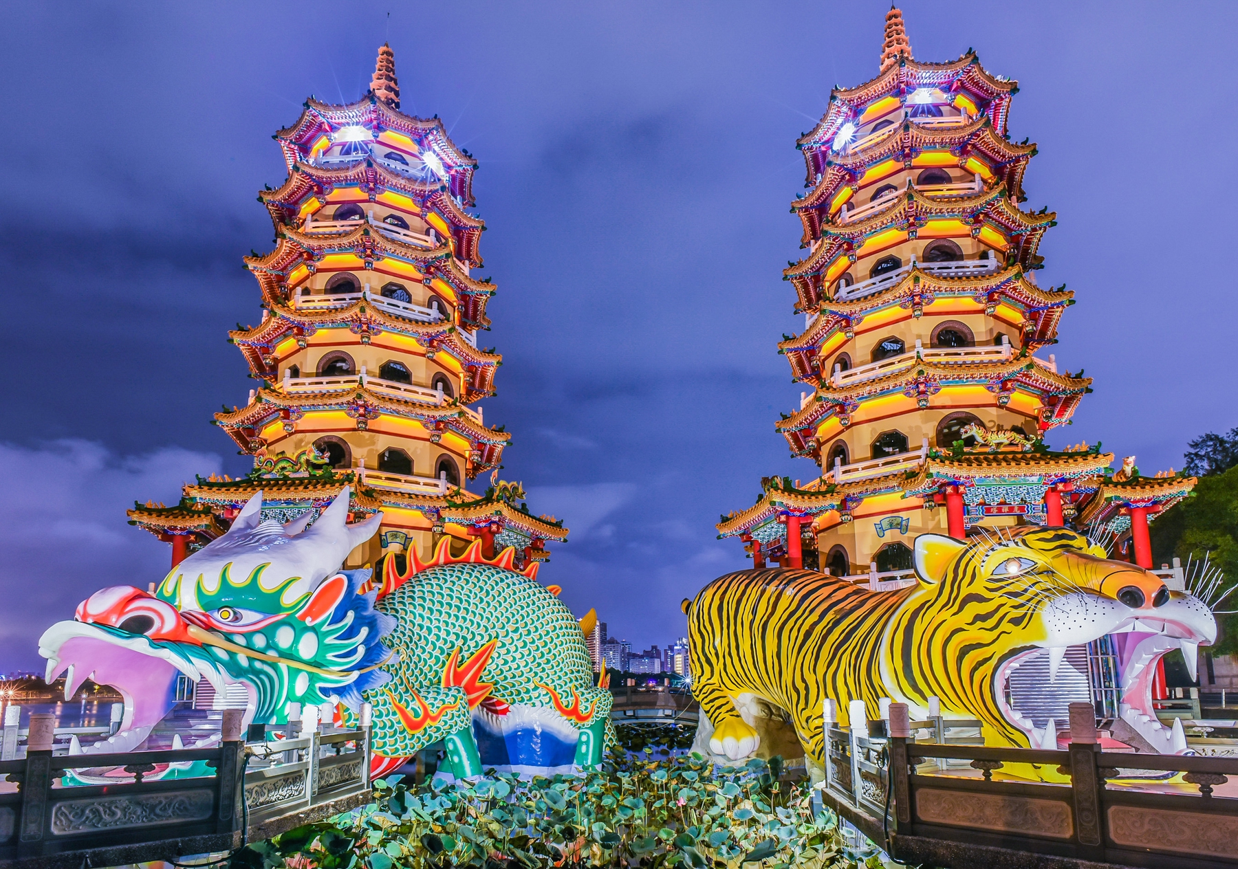 中でも寺廟「龍虎塔」は特に有名な観光スポット。龍と虎の形をした入口と出口が印象的なこのスポットは、開運効果があるとして人気です。