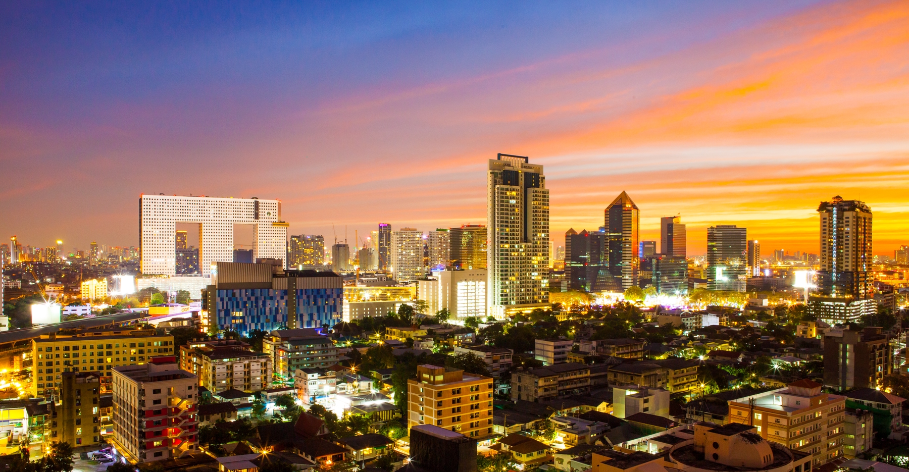 インドシナ半島中央部とマレー半島の北半を占めるタイ。その首都バンコクは、ASEAN(東南アジア諸国連合)経済の中心地として広く知られています。「東南アジアのハブ」とも称される国際都市で、高層ビルの立ち並ぶ都会的な側面と、厳かな仏教文化や王宮文化が息づく側面を併せ持っており、海外から多くの観光客が訪れる人気の観光地でもあります。