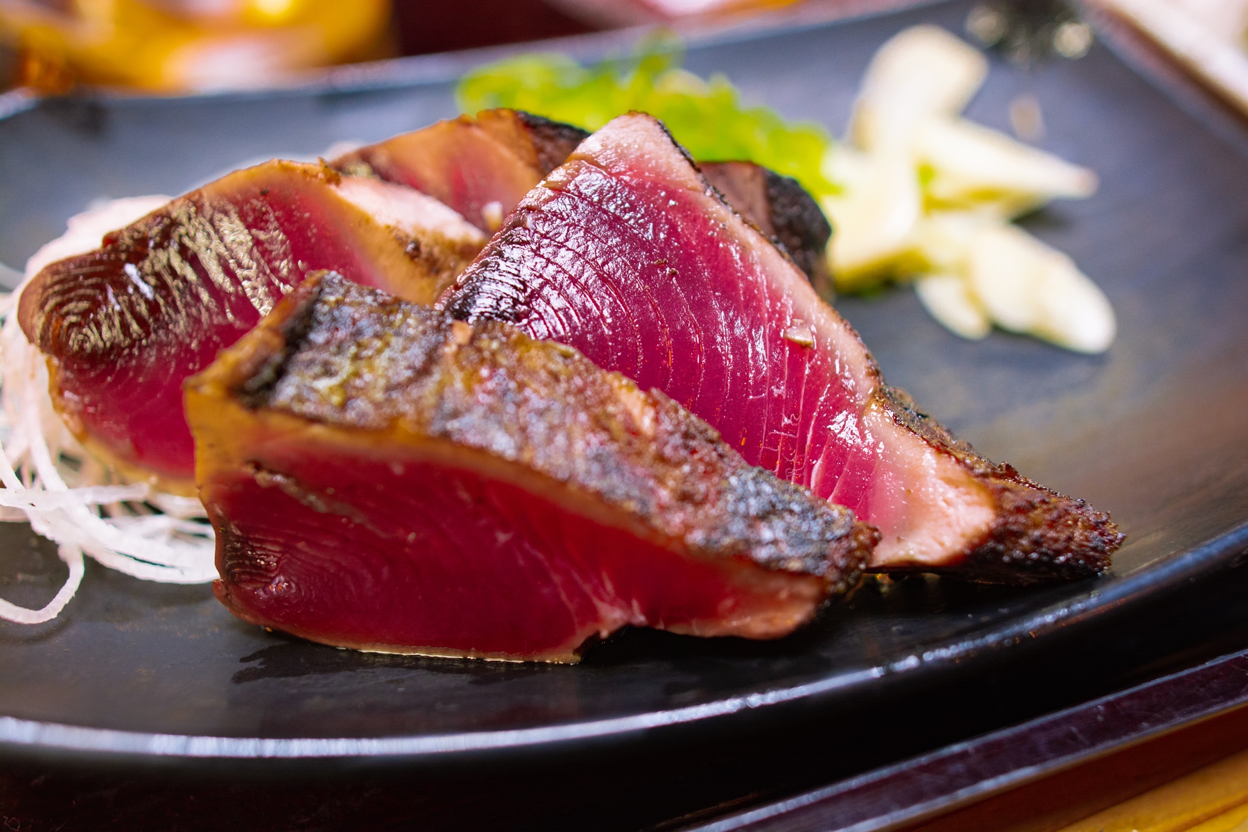 さらに、5月の白浜では「カツオ」もおすすめ。3月から5月が旬の紀州産カツオは、もちもちの食感が特徴です。弾力のある身を刺身、にぎり、漬け丼など、さまざまな食べ方で味わえます。