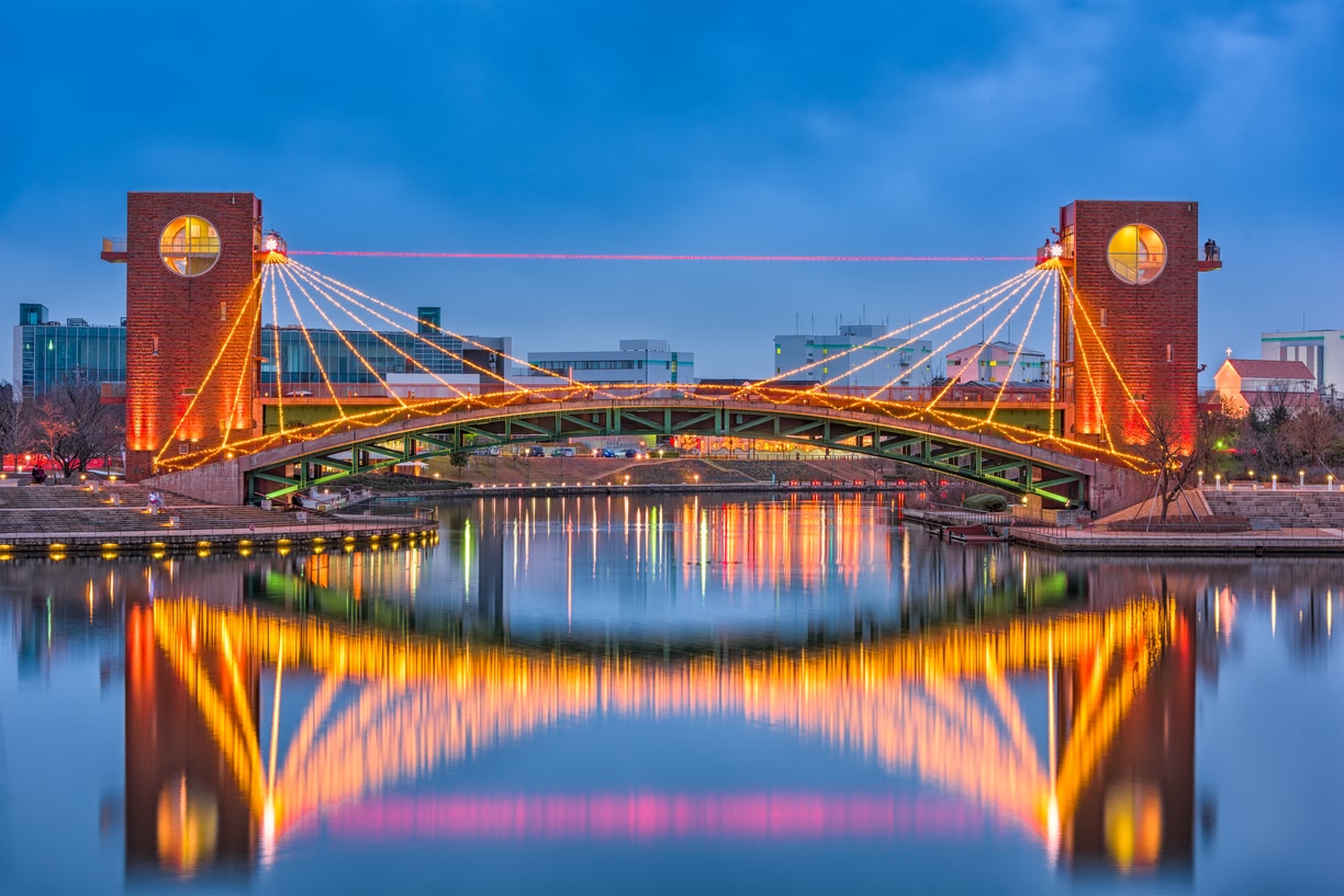 四国を構成する徳島県の県庁所在地、徳島市。東部は紀伊水道に臨み、南部は山々を抱く、自然豊かな都市です。市内には大小合わせて134本の河川が流れていて、古くから水運が発達していました。周遊船など、川を生かした観光が楽しめる街です。