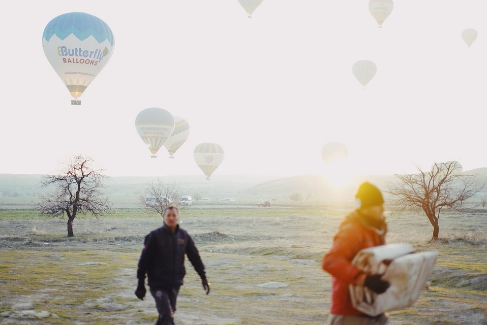 カッパドキアを訪れるほとんどの人が、この気球が目当てだと言っても過言ではないでしょう!ここから見える絶景が見たくて、高所恐怖症ではありますが、せっかく来たのだからと自分に言い聞かせて、気球に乗ることにしました。現地には20社以上、トルコ政府公認の気球の運行会社があり、日本からでもインターネットやホテル経由で予約することができます。僕はホテル経由で事前に予約しておき、朝、ホテルまでお迎えに来てもらって、気球に乗るツアーに参加しました。